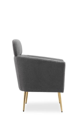 Fotel posiada tapicerkę wykonaną z miękkiego, wygodnego materiału, na którym będziesz mógł komfortowo zasiąść. Siedzisko oraz oparcie mają atrakcyjne kształty. Piękny szary kolor obicia połączony został z kontrastowymi złotymi nóżkami. Dzięki temu model ten to klasa sama w sobie i będzie on w stanie przykuć wzrok każdego.